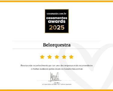 Gostaríamos de expressar nossa profunda gratidão à Belorquestra que tornou nosso casamento ainda mais especial. A performance foi simplesmente encantadora, cada nota tocada com perfeição, criando uma atmosfera mágica e inesquecível. Vocês capturaram a essência do nosso dia e transformaram cada momento em uma verdadeira celebração. A emoção que vocês transmitiram através da música ficará para sempre em nossas memórias. Muito obrigado por fazer parte desse dia tão importante em nossas vidas!